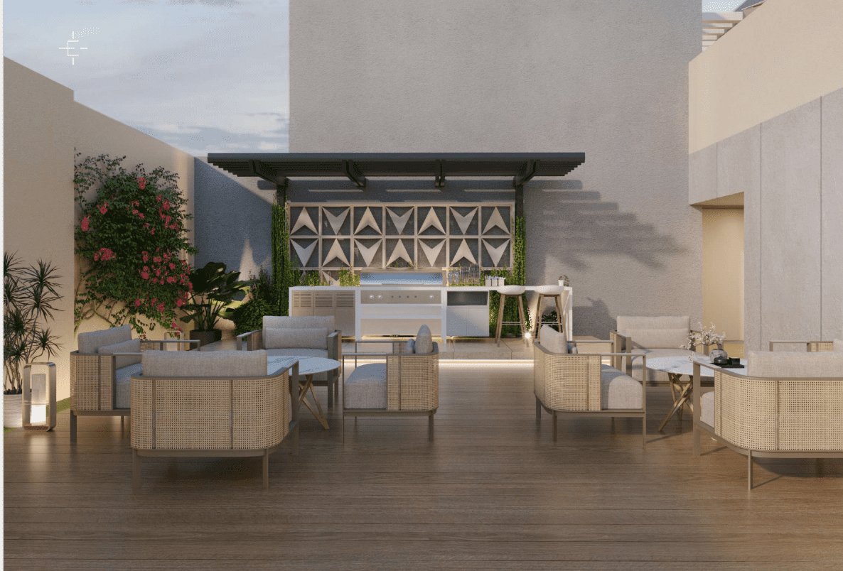* Open-air barbeque area.