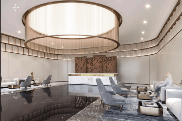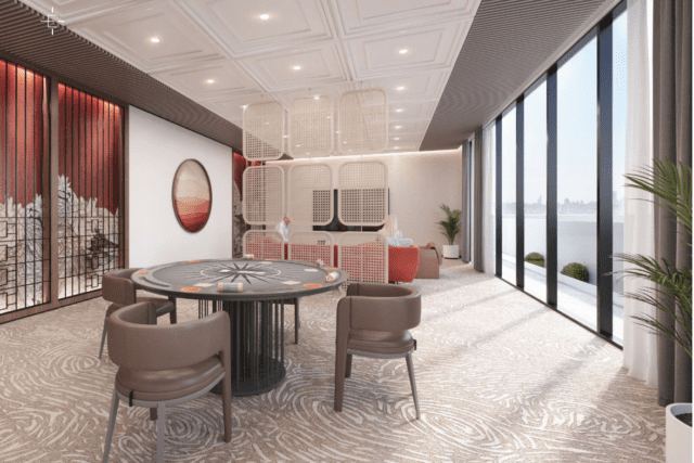 * The sleek, elegant business lounge offers a great place that caters to all your business-related needs perfectly.