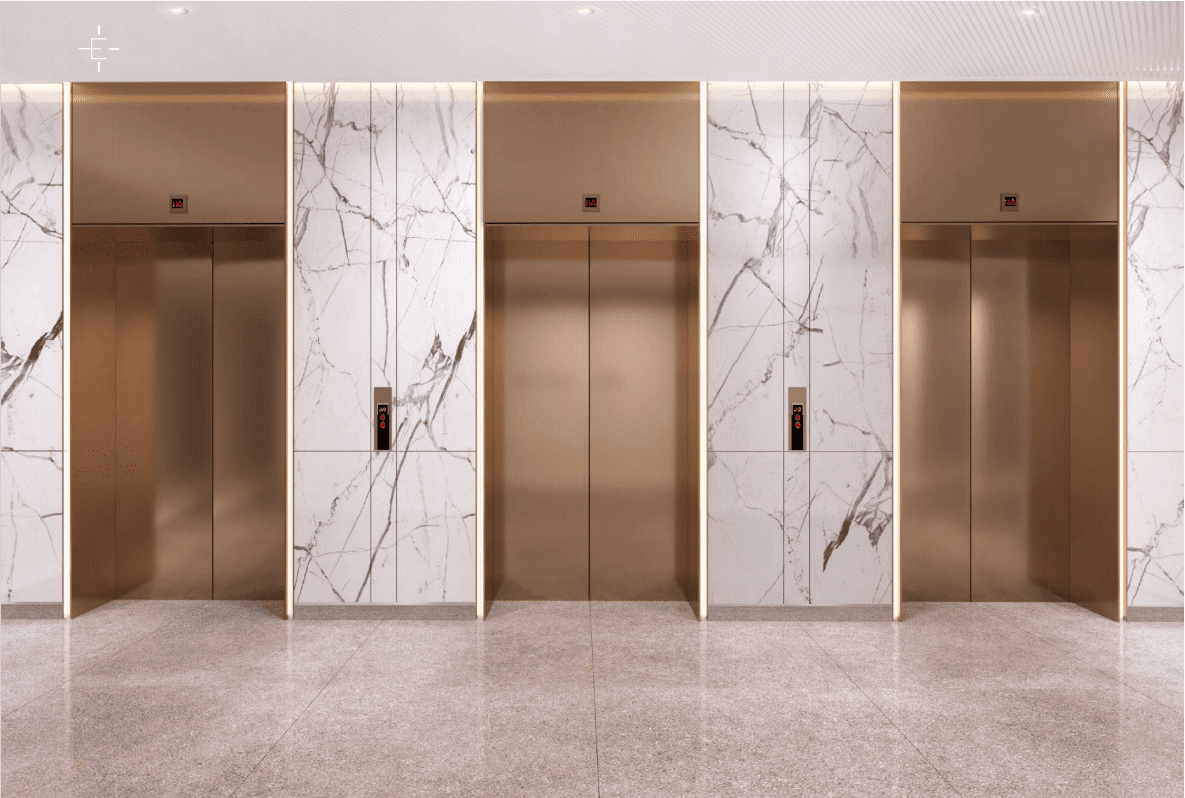 * Three custom designer passenger elevators and one service elevator.